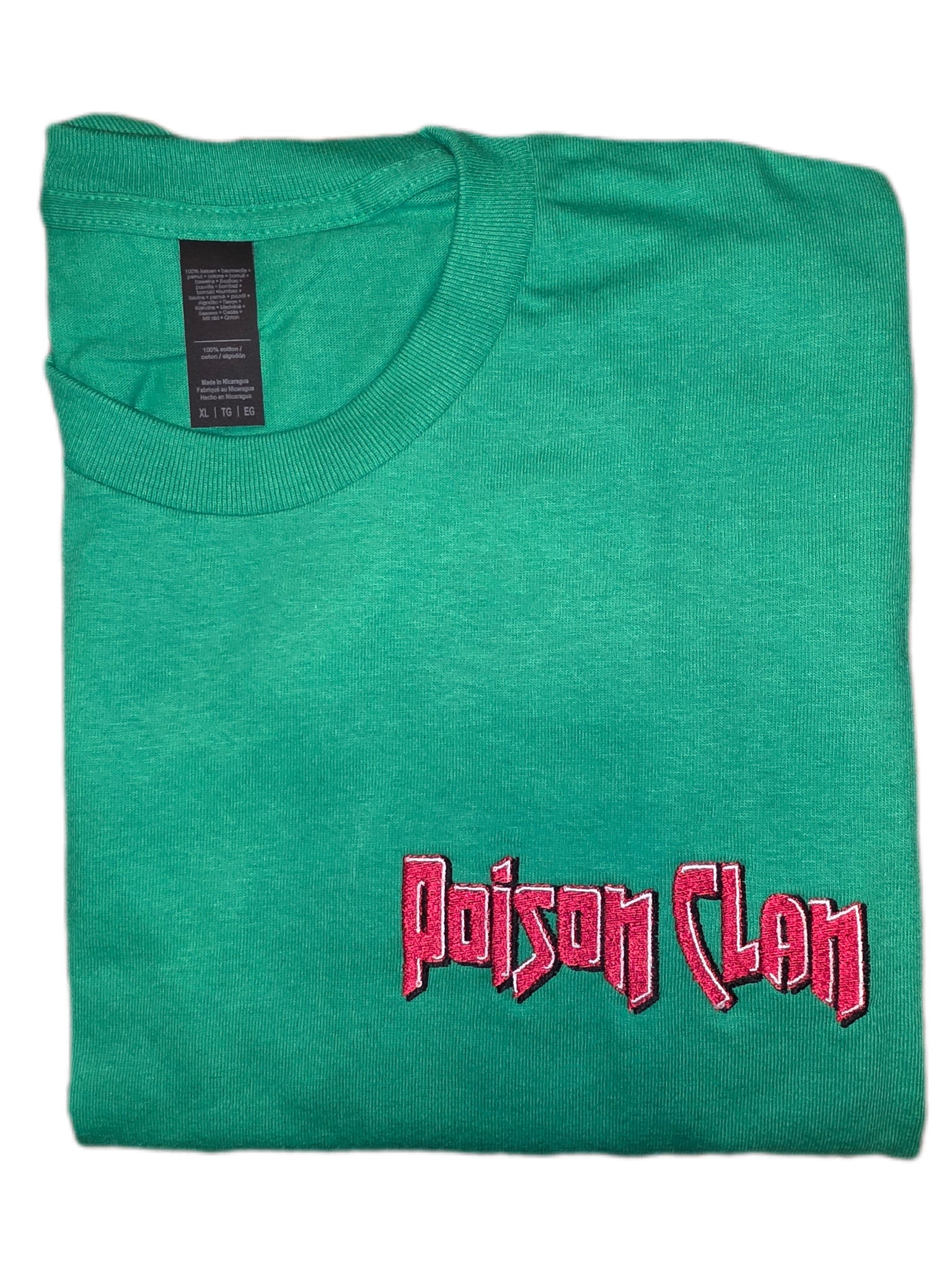 Top quality t-shirts with the Poison Clan logo on the front. Available in multiple styles & colors. Embroidered, Screen Printed, or Heat Pressed. Unisex